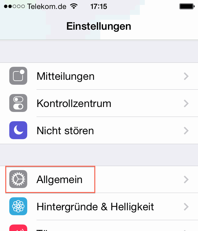 2. Wählen Sie in der danach erscheinenden Liste den Eintrag Allgemein.