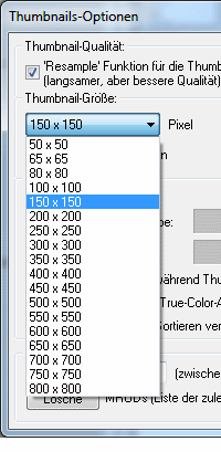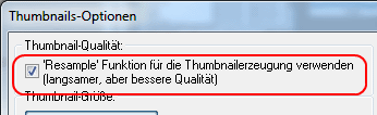 Um die Qualität zu verbessern, wählen Sie Optionen – Thumbnail-Optionen ändern. Schalten Sie unter Thumbnail-Qualität die Resample-Funktion ein. Das ergibt bessere Vorschaubilder.