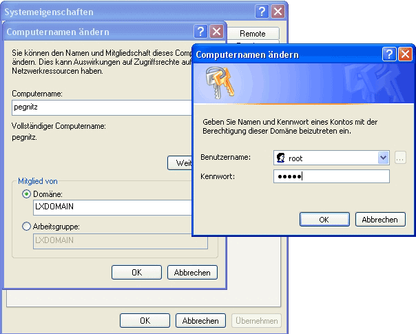 Nach einem Klick auf Ok will der Computer den Benutzernamen und das Kennwort des Samba-Root-Accounts wissen. Nach der Eingabe dieser Parameter ist der Computer in der Domäne angemeldet.