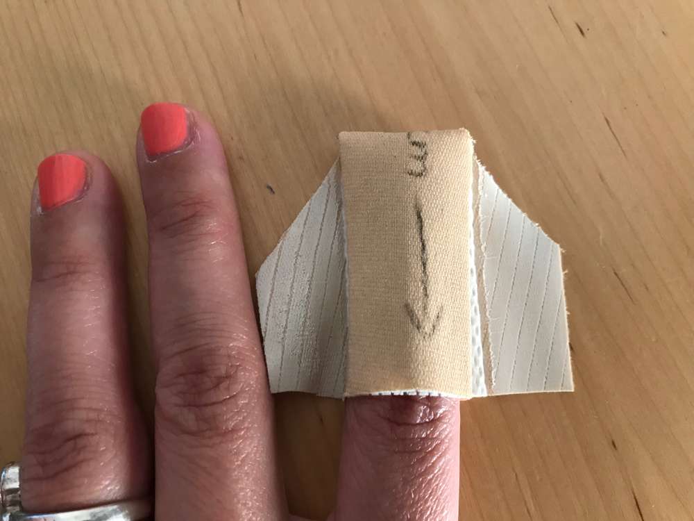 5. An beiden Seiten des Pflasters sind gleichgroße Dreiecke herausgeschnitten. Es geht auch ohne Umklappen des Pflasters, aber mit diesem einfachen Trick werden die Dreiecke gleich groß.