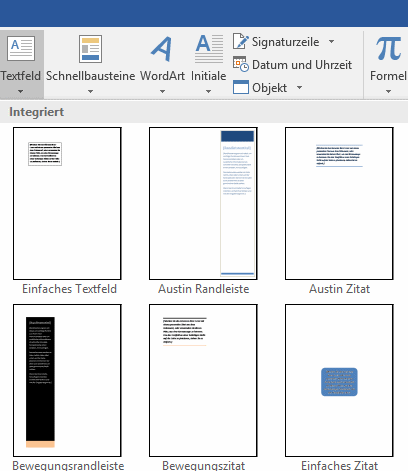 Sie bekommen neben dem einfachen Textfeld schon gleich mehrere vorformatierte Varianten zur Auswahl präsentiert. Suche Sie sich darunter das passende aus.