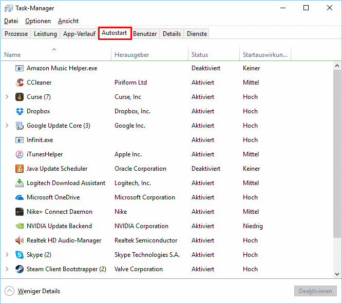 - Finden Sie dabei welche die zu unwichtigen Programmen gehören oder Sie vielleicht sogar ständig nerven, klicken Sie das Häkchen weg. Das Programm ist nun deaktiviert.